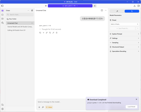 ローカルLLMでAIを対話するにはLM Studioを利用すると簡単に体験できます。
