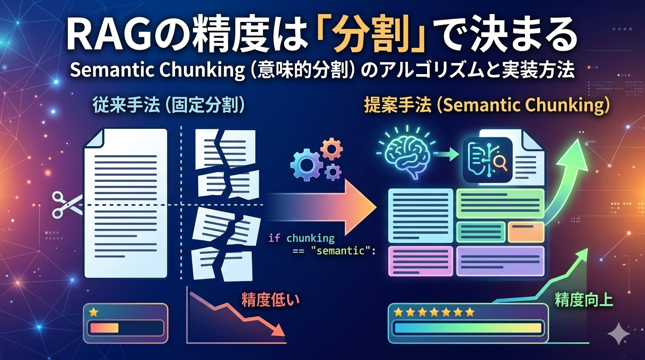 本記事では、RAGの精度を劇的に向上させる最新手法「Semantic Chunking(意味的分割)」を徹底解説します。